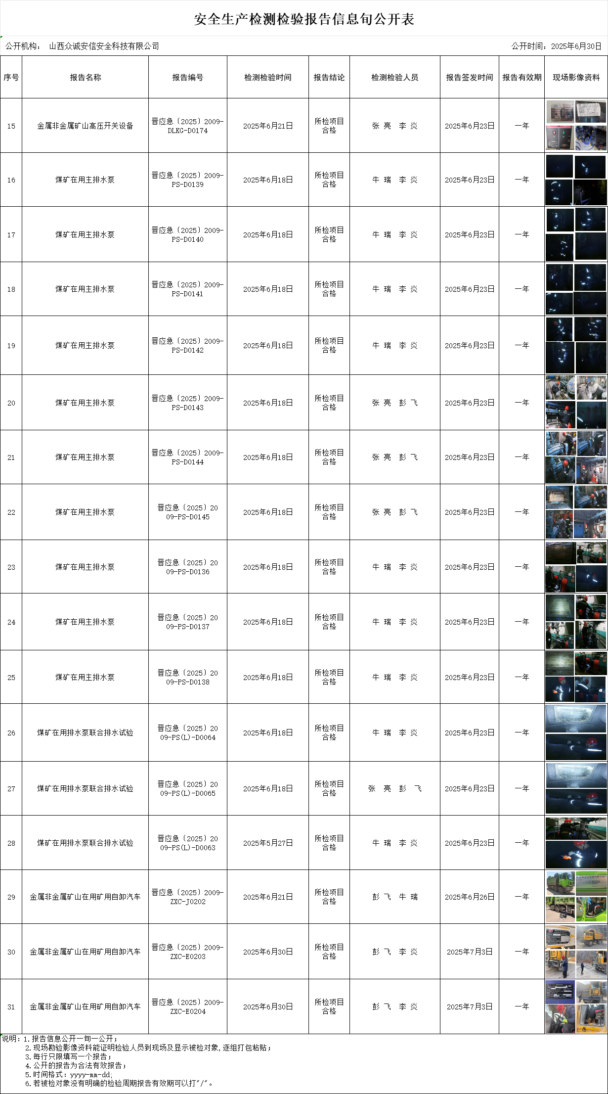 安全生产检测检验报告信息6月下旬2